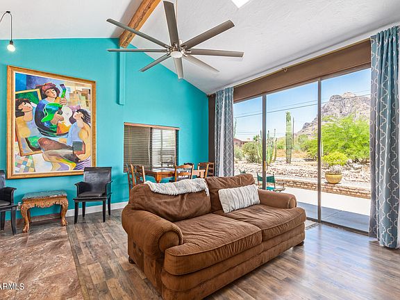 Back on the Market! The buyer could not perform. A stunning property, with breath taking views is ready for you! This home is great for a primary residence, second home, and is currently a very successful vacation rental. The property consists of 3 bedrooms, 2 bathrooms, 1776 square feet, and sits on .6250 acres. There is a large wall of glass in the great room that allows natural light and million-dollar views of the Superstitions from your kitchen/great room. The backyard is absolute luxury with a heated Pool/Spa and firepit with views of the city and Superstitions. There is a large Arizona room, pass through garage, upgrades thought the house and much more! Pool was complete 2021, brand new AC in 2023, new electrical panel in 2019, and new water heater installed in 2020. Come see this GEM today!