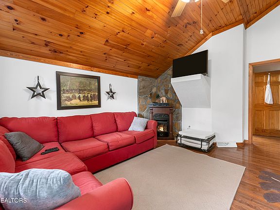 Here is an adorable 650 square ft home with a large deck for cookouts. In a Gated Community and so close to all of the amenities and attractions. This home has 2 bedroom and 2 bath, a full kitchen with refrigerator, stove, oven and a microwave. It has so much cabinetry in the kitchen and bedrooms to store all of your needs. Two fireplaces in the living room for those cool evenings. Nice size lot that with a very short walk to the pool area. The community has a very large round recreation center, swimming pool, shuffleboard, horseshoes, playground, tennis court and patio area. HOA covers high speed Internet, cable TV, water, sewer, trash and lawn care. If you want to live in a wonderful and affordable place in the Smokies and in a gated community, this is for you. 10-15 minute drive to Gatlinburg 25 minute to Pigeon Forge. Restrictions say no short term or long term rentals Brand new HVAC system installed. A new roof has just been added to the home.
