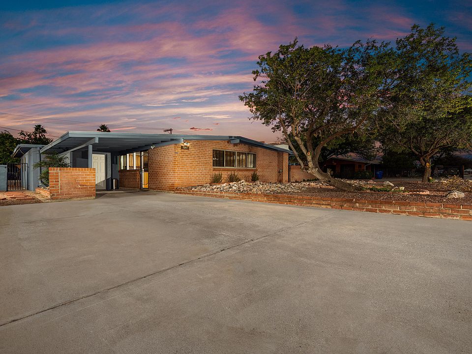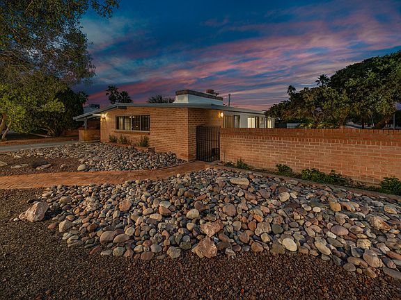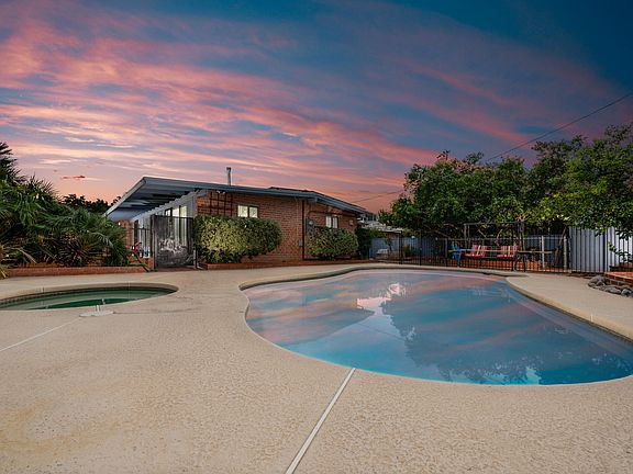 Built in 1955, this charming, single family, Duffy neighborhood, brick home is approximately 1,840 square feet and comes with a sparkling private backyard pool and spa that has been updated with a new energy efficient pump, led color changing lighting, and filter system. The pool is plumbed for a pool heater and is complete with hard-scaped pool deck which includes a wrought-iron pool fence. The back yard includes a spacious pool/storage area which has a new roof and roofing . The laundry/storage area is adjacent to the 1-car carport. As you enter through the new energy efficient front door you will see that the kitchen, dining and living area are central to the home and are perfect for entertaining or casually hanging out at the breakfast bar. The kitchen is tiled in southwest tile. The kitchen has stainless steel appliances which are new or newer. The kitchen appliances include a 3 door refrigerator, double oven range and microwave. The wooden tongue and grove ceiling in the family room along with the fireplace make it a cozy place to gather for celebrations or just hang out. The nearly 200 sq.' master bedroom has a new energy efficient door to the pool area and access to a 100 sq. ' + office area. Bedrooms 2 and 3 are approximately 120 sq.' Bedroom number 4 is approximately 100 sq.' Bedroom 3 contains a 3/4 bath while Bedrooms 3 and 4 have a separate door to the pool and patio area. The sides of the house have wrought iron gates and the low-care landscaping is graced with a combination of new and mature trees/palms and a new irrigation system. The interior of the house has been freshly painted and updated with beautiful wood look new tile flooring and wood base boards flow through out. The exterior of the house has a fresh coat of paint as well as professionally installed roofing. The Rosewood house has a newer central energy efficient furnace and air conditioner that has had routine maintenance for the last two years. This spacious corner lot is close to the U of A has the best mountain views visible while studying or relaxing poolside!