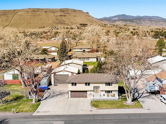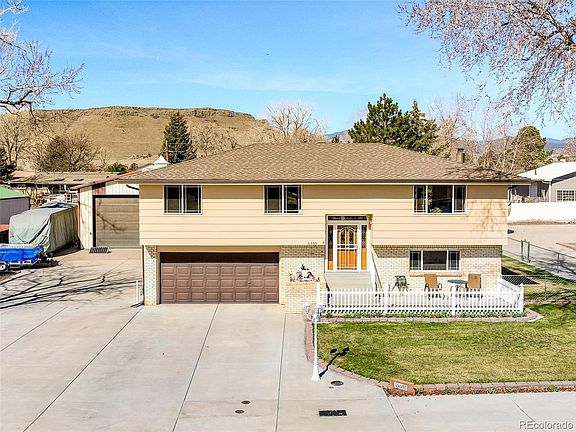 Nestled along the Arvada/Golden border with a picturesque view of the foothills; this beautiful bi-level home sits on a large 1/3 acre lot complete with a large stamped concrete patio, a 30' x 40' shop; perfect for an RV garage [with 11.5' garage door entrance], workbench or car garage, dog run, garden area, flower garden, upper deck with great views and plenty of grassy area to play. Horse allowed per zoning R-1. Inside you will be delighted with the light + bright open concept floorplan. The kitchen was beautifully remodeled, complete with custom built-ins and Corian countertops. Upstairs features a spacious family room right off the kitchen and dining area, three bedrooms; including the primary with ensuite, an additional full bath, and a large deck right off the kitchen - the perfect place to enjoy a warm summer evening. Downstairs you will find an oversized 2 car attached garage, laundry [washer + dryer included], HVAC + Utility room [HVAC, AC and Water Heater ALL 2 years old!], a 3/4 bath, an additional bedroom/hobby room and another large family room with a beautiful stone wall and gas log fireplace. This home has been owned by the same owners for 49 years and they have absolutely loved and cared for it. It is time to downsize, but we know this home will be a blessing to any Buyer. Come take a look and stay a while; take in the beauty of it all. You will be pleased you did.