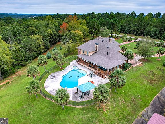 NEW ROOF! Stunning, upscale four-bedroom, 4.5-bath estate boasting 5,549 sq. ft. of living space on 13.4 acres, featuring privacy and scenic beauty. As you enter, you are greeted by a stunning foyer that opens into a spacious, light-filled living area, setting the tone for this extraordinary home. At the heart of the home is a chef's kitchen featuring new tile flooring, custom cabinetry, a spacious island, and stainless steel appliances-perfect for everyday living and entertaining. The primary suite on the main level features a spa-like en suite bathroom and a expansive walk-in closet with custom built-ins for a organized and luxurious wardrobe. The main level also offers an indoor gym, an attached two-car garage, and a detached two-car garage, providing ample space for vehicles and storage. Upstairs, there are three secondary bedrooms, two with its own private bathroom, offering comfort and privacy. The upstairs great room, featuring a cozy fireplace that is perfect for entertaining friends and family. Step outside to your own resort-style oasis, featuring a sparkling Gunite in-ground pool, a relaxing hot tub, framed by beautiful palm trees and breathtaking water views.