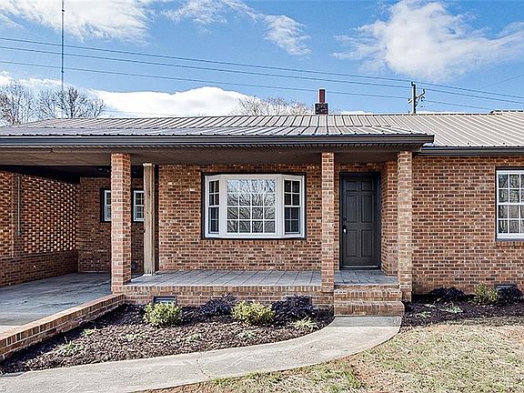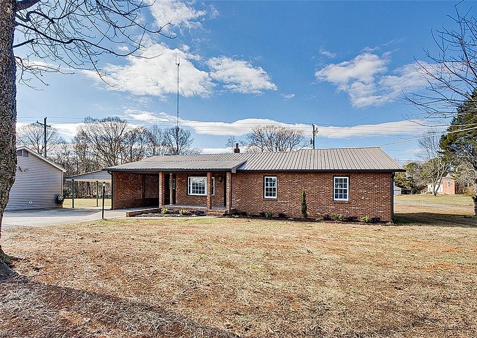 Charming renovated brick ranch ideally located near Asheboro, Greensboro, and Randleman. This 3BR/2BA home blends classic appeal with modern improvements, featuring refinished hardwood floors, crown moulding, and an updated kitchen with shaker cabinets, quartz counters, backsplash, and GE appliances. LVT flooring in the kitchen, breakfast room, sunroom, and both baths. The primary suite showcases a tiled walk-in shower, while both baths include shaker cabinets and granite. Updates include all-new wiring & septic system. Enjoy the new 10x16 deck overlooking a flat backyard. Two outbuildings add versatility: a 24x19 building with electrical and plumbing, and a 17x16 building with lean-to under a shingled roof with gutters. Only 20 minutes to the Toyota Battery Plant in Liberty, this move-in-ready home offers comfort, convenience, and quality. Its thoughtful updates, spacious layout, and functional outbuildings make it a standout choice for buyers seeking value and flexibility indoors!