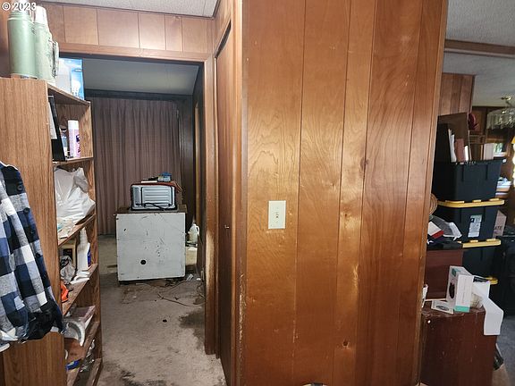 Bring your tools. Good bones but need some TLC and cleaning. 2bed 2 bath with living and family rooms. Master suit has WIC. Newer furnace and heat pump. Covered front porch, Lots of storage and built ins, inside and out, 2 sheds, Park rent 875, Seller trying to get rid of all stuff.