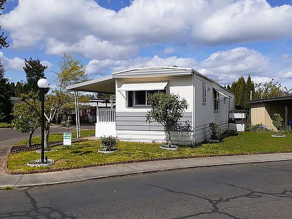 Upgraded Hillcrest mobile home located on lot 84 in McNary Oak Villa Park in Keizer, OR. Large living room, seperate kitchen with ample space for dinning. The carport is covered with attached storage shed. The front entrance has a large covered porch. Apple, pear, plum and black cherry fruit trees are planted on the lot. The house is sold partialy furnised. Lot Fee $795 + Sewer ,Trash,Security, ETC = $ 869 / month McNary Oak Villa is a senior only park (55 yrs or older). Potential buyer must be approved.