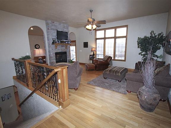 Built in 2005 on .63 ac; fenced/backs to wooded area and wet weather spring.Open floorplan with hearth room,living room,and formal dining easily accessible for flexible family fun and entertaining.Floor-to-ceiling stone fireplace located between the hearth and living room nicely accents the floorplan.Kitchen boasts granite counter tops with large pantry;opens into hearth room and deck access.Hardwood floors thru majority of main level.3 BR's on the main level,2 additional bedrooms in the walkout basement,4 Ba's,3 living areas(and a bonus area in the basement that is perfect for,and currently used as,the childrens play area.)There is an additional room in the basement for office/exercise also.The spacious rec room allows room for the wet bar, card/poker play area and the usual family room as well.John Deere room opens from the back exterior,as well as abundant area in the,(graveled),crawl space for storage. Gated,cul-de-sac street.Refrig/all tv's neg.