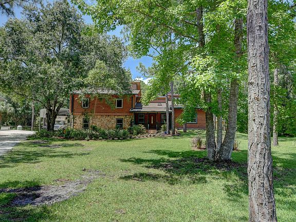Get away from it all on this secluded, lush and rustic 5 acre Palm City Farms property! Well maintained 3/3 custom log style home with attached CBS 2 car garage being sold by original owner after beautiful kitchen and bath renovations plus new vinyl plank flooring throughout. Kitchen with new stainless appliances, solid surface countertops, new fixtures and soft close cabinets. Barn has 2 car garage, 2 stalls, tack room and large upstairs workshop which could be converted to living space. Special features include 16kW whole house generator, 17x30x16H metal carport for RV/boat, gas fireplace, impact windows, central vac and reverse osmosis. New roof 2019 with lifetime shingles. This property is fully fenced and cross fenced with a large pond. Paved road, easy access, no HOA or restrictions!