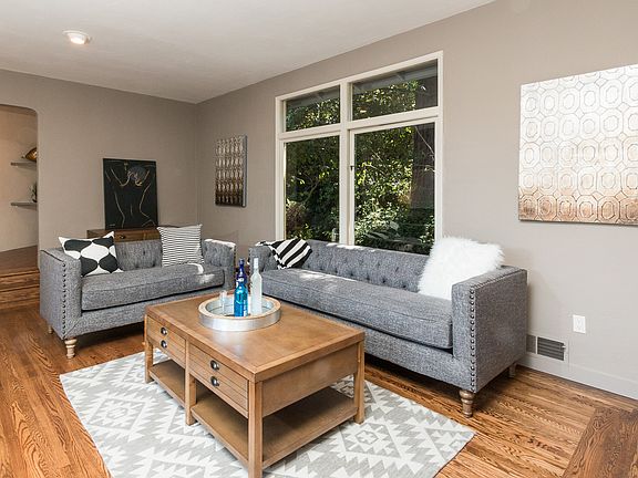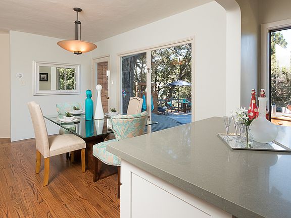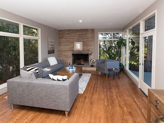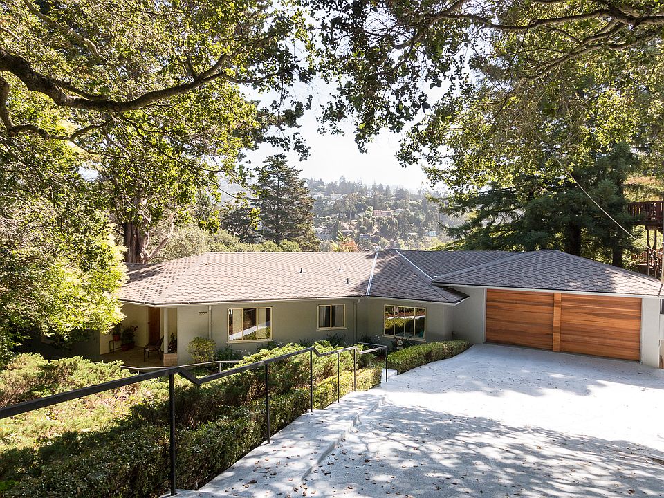 Magical Mid-Century Modern on expansive lot with two street frontages in Upper Rockridge. Urban oasis with park-like setting with views of hills & vistas nestled amongst mature Oaks, Pines and Cypress trees. Huge deck for indoor/outdoor entertaining with picture windows from the living room, dining room and kitchen. 3 bedrooms and 2 baths on main floor, plus lower level rumpus room and bathroom with in-law potential. Plus 2-car attached garage, workshop, storage & original sports court. Truly a one of a kind gem on a very special site, peaceful and secluded yet just minutes to Rockridge, Montclair & Piedmont.