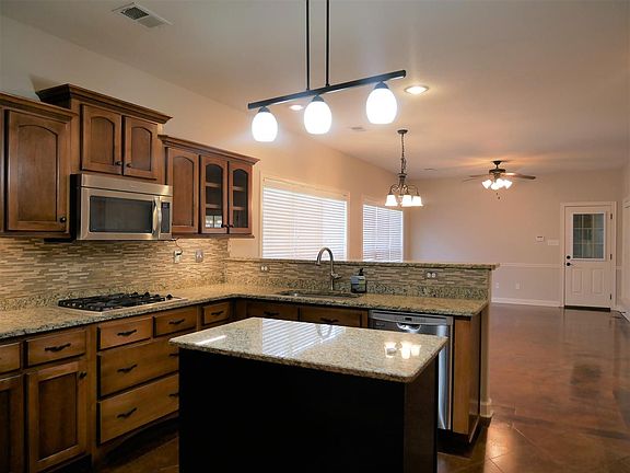 Outstanding home all on one level!!! 3 bedrooms 2 baths, large open kitchen with Hearth room, All season room, 2car garage, plantation shutters and a hidden feature. Stained concrete floors that have just been resealed, Fresh paint, professionally cleaned carpets, so it is ready for you to move right in. Great location at the end of the road, no traffic because garage is on the back of the house, concrete fence with wrought iron gate, and many other upgrades.