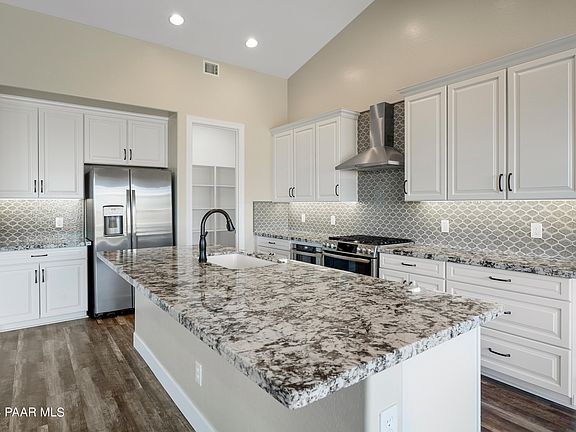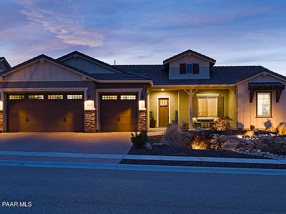 Why buy new when you can buy a like new home with over $100k in landscaping upgrades, custom window coverings, and many other builder upgrades? This centrally located model-like home in the desirable Granite Dells Estates offers close access to all of your outdoor adventures, dining, and shopping. The wall of glass welcomes you to the beautiful landscaping upgrades which include an extended patio with a custom electric shade and mounted TV, relaxing spa, large built in BBQ with bar seating, and a 15-person fire pit with custom Sunbrella seating. The light and bright kitchen offers an expansive granite center island, under mount large sink, double ovens, and a huge walk-in pantry lined with shelves. Current VA loan has 3.75% rate and is assumable to eligible VA buyers with a valid COE.