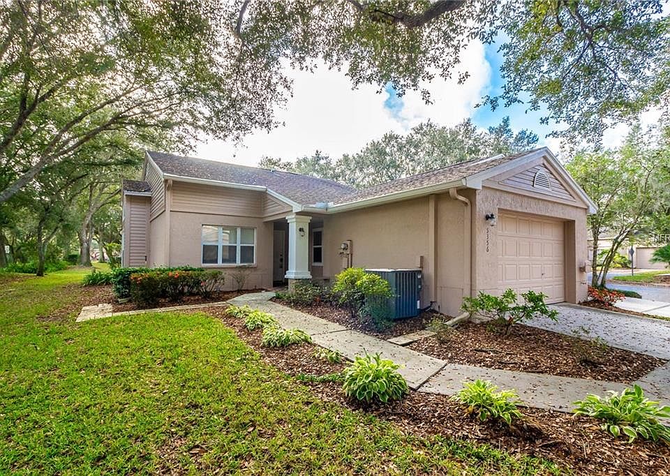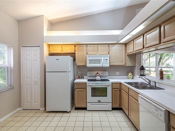 Live in beautiful Lake Bernadette in this care free golf course villa situated under magnificent 100 year old majestic oaks. Become a member of the club at Lake Bernadette play golf, tennis, swim play basketball on the courts, use the fitness center or meeting room at the clubhouse. Two Bedroom, Two Bath Villa in LAKE BERNADETTE!! Updated and Upgraded with every touch of elegance and class! This home has been meticulously maintained and kept in pristine condition. Located in a subdivision but on a private road, you get a country quiet feel with a subdivision look. This private road has one way in and one way out which gives you a feeling of safety and security. You will find high ceilings opening into a beautiful spacious dining and living area. A Pass-through bar at the kitchen allows you to see how beautiful the natural light shines into this home! The huge master bedroom has a walk in closet as well as a standard closet and is connected to a large master bathroom with a garden tub, tray ceiling, and double sinks. In the kitchen, there are updated appliances including a convection oven, eat in kitchen. The HOA not only includes scheduled landscape and roofing replacement/repairs as well as paving/resurfacing, there is NO CDD! This house is a GEM dont let it pass you by!