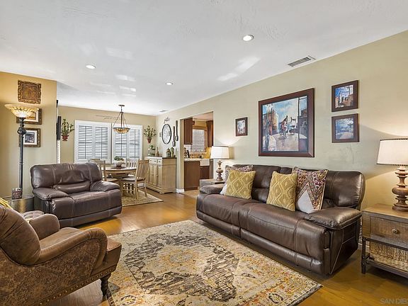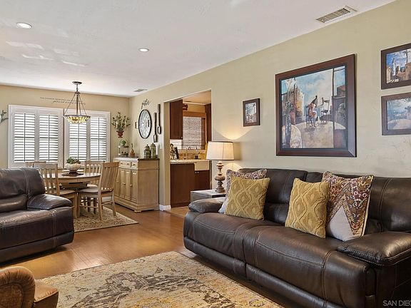 Turn-key and move-in ready home in Allied Gardens. Well-maintained with upgrades throughout. Attention to detail and pride-of-ownership are quite apparent. Hardwood flooring, remodeled kitchen with custom cabinets, beautiful granite countertops, travertine flooring and Stainless Steel Appliances. Bullnose corners, gorgeous lighting fixtures, ceiling fans and custom paint throughout. Remodeled backyard oasis with custom hardscape, grass, built-in custom BBQ, firepit and jacuzzi. Air Conditioning, whole-house fan,