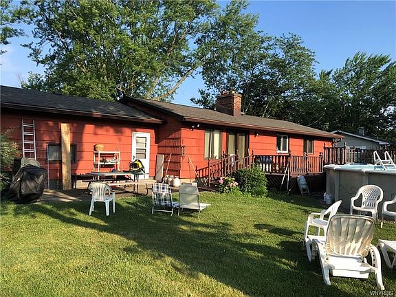 Lewiston ranch with updated custom kitchen by Patsy Viola. Top quality with granite counters. Spacious rooms. Features include a Dining room, Living room with fireplace. 1.5 baths on first floor plus a full bath in the finished basement. The basement family room also features a fireplace. That is 2.5 baths & two fireplaces. Large fenced yard with not right on top of your neighbors with green space behind you for a private setting . Minutes from thruway & all amenities, Military Rd shopping or Village of Lewiston's Center Street. 2+ car attached garage feature kitchen cabinets built in cook top sink & running water. Ideal for making the Sunday sauce! Great party yard with pool & deck plenty of room to entertain. Built in 1958 quality construction well maintained through out the years.