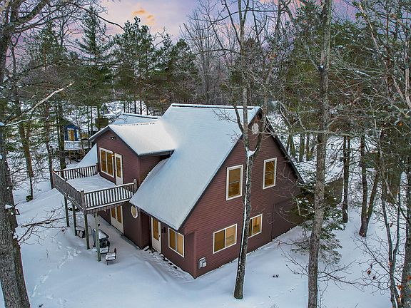 Beautiful Up-North Lakefront Retreat. Tranquility at its finest, the call of the loons is defining. This gorgeous custom-built/designed home sits on 97' of frontage on all-sport Manuka Lake, featuring four bedrooms with the main bedroom upstairs overlooking the lake, a smaller bedroom on the main floor with an ensuite, and two other full bathrooms. The unencumbered view from the back upper deck and patio lets you take it all in. This home features tongue and groove Ceilings, hardwood flooring, and custom log accents that provide that Up North ambiance. 160 Acre Manuka Lake is known for its many bays, serene island, great fishing, kayaking, and waterfowl observing. Although Manuka Lake is an all-sport lake, the road, and the surroundings are the epitome of ''peaceful''. Bring your bags, thi