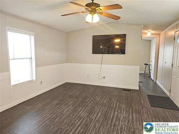 Welcome to Indian Creek Village in Lower Milford Township! This charming 2-bedroom, 2-bath mobile home is set on a desirable corner lot in the highly sought-after East Penn School District! Step inside to find laminate flooring throughout the living spaces and freshly painted neutral tones for a bright, inviting feel. The kitchen is a standout with abundant cabinetry, stainless steel appliances, and a cozy breakfast nook. The spacious owner’s suite features a walk-in shower, while the second bedroom is paired with a hall bath including a tub/shower combo. A covered porch off the dining area provides the perfect spot to relax. Additional highlights include ceiling fans with lights in every room, a 2-car driveway, and nearby overflow parking. This lovely home is move-in ready, offers comfort, style, and convenience, and waiting for its new owner!