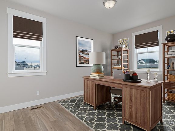 "The Olivia". This modern floorplan offers 3 upstairs bedrooms, downstairs private office and convenient upstairs laundry. The kitchen is open to the dining area and great room allowing for lots of natural light from the windows overlooking the backyard covered patio and offers a large island with bar seating, stainless appliances and quartz countertops. Primary suite upstairs offers a tile shower, separate soaking tub, and a large closet. 3 car garage. Home is under construction and photos are similar. Front and rear landscape is included. BTVAI