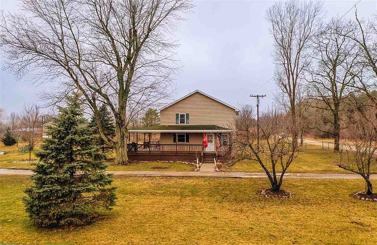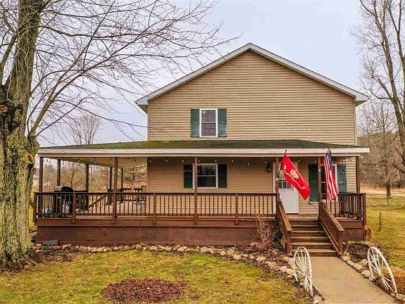 Adorable home on 10 country acres. Home Features a large wrap-around porch overlooking a pond and wooded back lot. Remodeled kitchen includes all appliances and an island with room to sit three. The living dining room area is great for entertaining. Three sizable bedrooms including the master with a large walk-in closet. Two full bathrooms, main floor laundry and hardwood flooring throughout. The property is partially fenced for livestock or pets including a 5x5 chicken coup, horse lean to shed and a large fenced garden area with both raised and ground level beds. The 25x40 pole barn with electricity has an overhead front door, two sliders, and a stall area. The perfect property to raise chickens, goats and horses.
