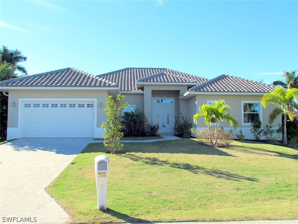PRICED TO SELL ! Direct Sailboat Access Pool Home In Cape Coral Yacht Club Neighborhood. Minutes to open water! Quiet no thru traffic on cul-de-sac. Spacious floor-plan features double door entry, 4 Bedroom, 3 1/2 Bath, 2 Car Garage. 12-14 Ft Ceilings in Living and Dining, 10 Ft Ceilings in Bedrooms, 8 ft solid interior doors, and Impact glass doors and windows. Glossy porcelain tile thru-out main living area, with engineered wood in bedrooms. White subway tiles and mosaic tile floors in bathrooms. Italian Wood Cabinetry , Quartz Counter Tops, Island, Samsung appliance package, and Sharp Microwave in Drawer. Laundry room has top loading washer with built in sink & steam dryer. Large pavered lanai and pool deck. Pavered walkway to seawall. Outdoor grilling area and shower. The infinity edge pool & spa with electric heater and salt water system is absolutely inviting. Professional landscaping and automatic sprinkler system. Close to all the local amenities: Cape Coral Beach and Yacht Club, Restaurants, Shopping and Downtown Cape Coral.