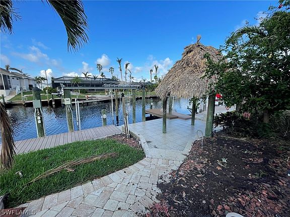 MOTIVATED SELLERS…A boater's dream! Two quick turns and out to open water. Located in one of the most desirable neighborhoods in all of SE Cape Coral. Roof was replaced 2017, HURRICANE IMPACT WINDOWS with a transferable lifetime warranty, newer Trane AC system with transferable warranty, upgraded electrical, new plumbing throughout whole house, Transferrable FLOOD POLICY! Recent wind mitigation and 4 point inspection reports. New hot water heater with a transferable warranty, Spacious interior with over 2400 living space 3 BR's, 2 baths, large kitchen area overlooking the expansive pool area, salt water lap pool comes with electric and solar heating, extra-large screened enclosure, paved deck, 2 BOAT LIFTS, 7 ton and 10 ton with canopy, lifts can fit a 28 foot boat and 22 foot boat, dock is tiled, mature, lush landscaping, drip irrigation throughout property, backyard is largely paved Tiki hut on deck for Western sunset views. Perfect home for entertaining. This property was damaged in the recent Hurricane Ian.