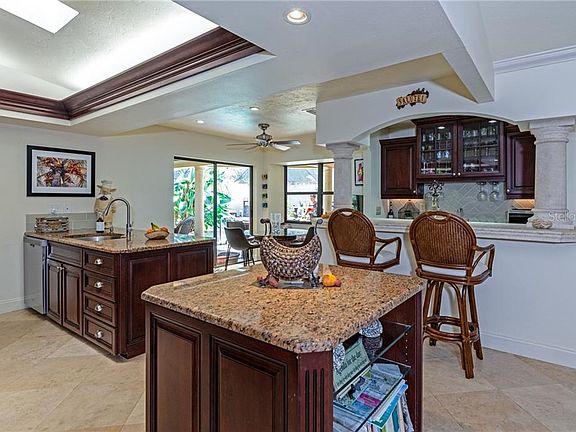 - Interior Features: Ceiling Fans(s), Eating Space In Kitchen, High Ceiling(s), Split Bedroom, Stone Counters, Crown Molding, Solid Wood Cabinets, Thermostat, Kitchen/Family Room Combo, Solid Surface Counters, Window Treatments, Vaulted Ceiling(s), Skylight(s), Coffered Ceiling(s), L Dining