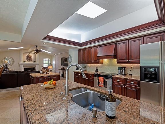 Beautiful, well-loved and maintained 3/2 split plus plan luxury pool home on beautiful canopied street. Perfect for entertaining. Large lot upgraded landscaping. A gardener's delight. Huge lanai with nice sized pool, new pool light, privacy walls, 2 shaded entrainment areas with fans and a sky light, maintenance free decking, built in grill with exhaust fan, privacy walls, free standing spa, outdoor shower and storage cabinets. Patio with pergola just off lanai. Storage shed Included. Roof 4 years old, AC 1 year old, water heater 1 year old. New vinyl wood plank look flooring in all 3 bedrooms. New herringbone glass tile backsplash in kitchen and barrister bar. New neutral marble look tile on surround of wood burning fireplace. Huge dining room, cathedral ceilings in living room and dining room. 9-foot pantry off living room/kitchen area. Completely fenced in back yard for little ones or pets. Top rated school district. This home is a must see. Masks are required for all showings.