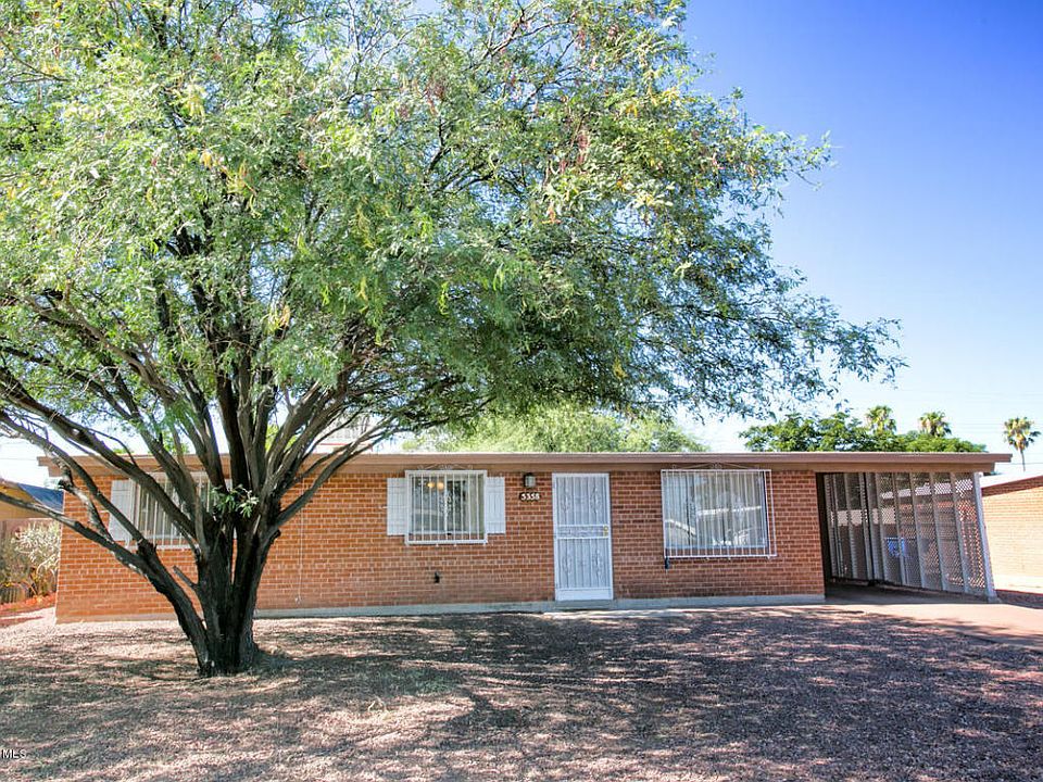 Move-in Ready 3 bedroom home with open ''great room'' style living area. Shady carport and brick-paved driveway. Large yard with mature trees and cement slab wall. This house comes with a bonus workshop/studio and storage. Relax and enjoy some summertime barbeque on the covered porch. Seller is offering a 1-year home warranty!