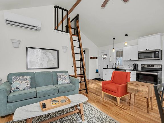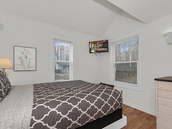 Step inside to discover beautiful hickory wood floors, modern tiled bathroom, and contemporary decor designed for comfort and ease. The open living area features a cozy sofa, streaming-ready smart TV, and large windows that fill the space with natural light and lake views. The fully stocked kitchen includes updated appliances, cookware, and everything you need to feel at home.