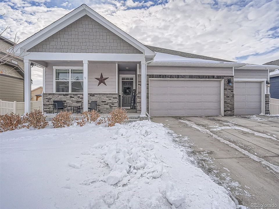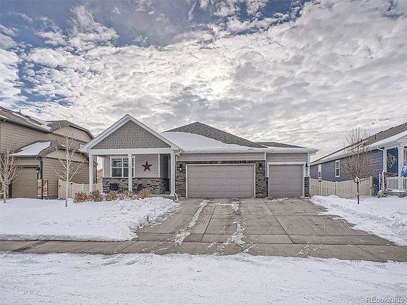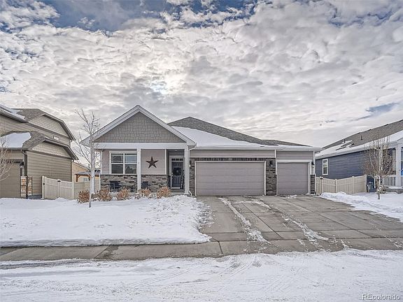 Beautiful 3 bedroom, 2 bathroom ranch home located in the desirable community of Neighbors Point in Firestone. Everything has been chosen with thought and care from the lovely landscaping and 3-car garage to the fine details inside. As you enter the home you are drawn to the bright and open floor-plan. Entertain family and friends in your open-concept kitchen featuring stainless steel appliances, pantry with automatic no-touch lighting, under cabinet lighting, granite counters, modern backsplash, recessed lighting and island. The flow from the kitchen to the spacious living room lends itself to an expansive entertainers dream. The many windows throughout the home flood with natural light. Retreat to the main floor Primary Suite with attached bath and oversized walk-in closet. You will also find a main floor laundry room with automatic no-touch lighting and full unfinished basement ready for your personal touches. Basement is plumbed for an additional bathroom and can easily include 2 more bedrooms. Step outside to the stamped-concrete patio and fenced backyard with irrigation to host a BBQ or enjoy a cup of coffee. The Community boasts nearby shopping, Firestone Trail, Milavec Outdoor Recreation, Centennial Elementary School and much more! You won't want to miss out on this opportunity!