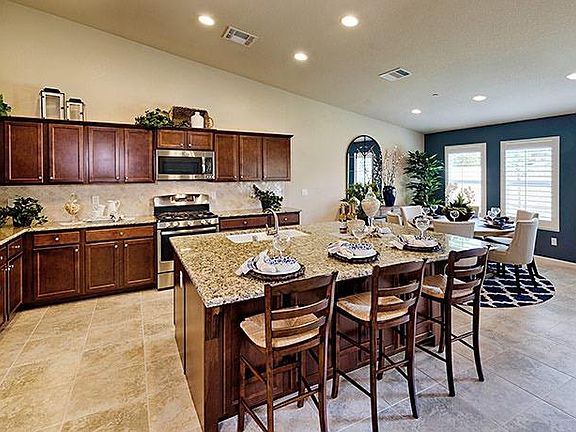 This beautiful Radcliffe model is a 4 bedroom, 2 bath Everything's Included home by Lennar and is very spacious and open. As you make your way through the 18 tiled entry, you'll see a large great room with flat-screen TV pre-wire and lots of windows to let in ample sunlight. The fabulous, functional kitchen features granite slab countertops and backsplash, GE stainless steel appliances, A large pantry, breakfast bar, Ceramic 18 tile flooring and Recessed can lighting. Master bedroom has 2 closets w/ vaulted ceilings, a large bathroom that has a separate shower & spa tub with dual sinks. Home has solar panels and you can rest easy with the newest automation-including a keyless entry & remotes to program lights. Pictures are of model home. Call your Realtor today for your own private showing.
