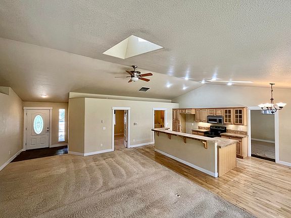 • Breakfast Bar, Ceiling Fan(s), Double Vanity, Laminate Counters, Open Floorplan, Primary Downstairs, Shower/Tub Combo, Soaking Tub, Tile Counters, Vaulted Ceiling(s), Walk-In Closet(s)
