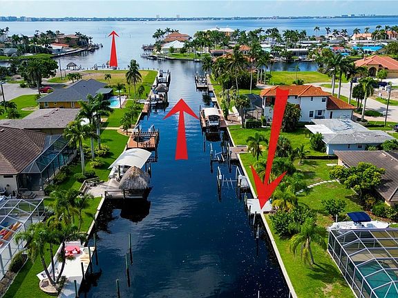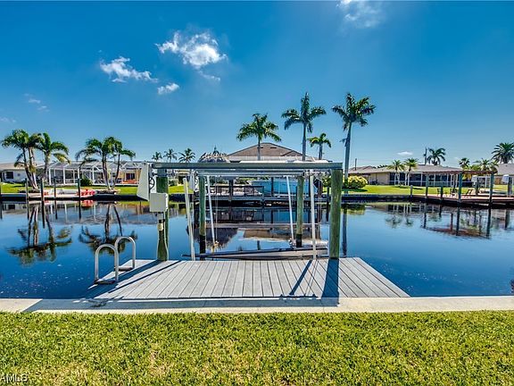 Wonderful MOVE IN READY home with DIRECT Gulf Access NO BRIDGES located in the desirable Yacht Club neighborhood. Calling all serious boaters, you can see the river from your dock only 0.3 miles to the river &then shoot out to the Gulf of Mexico! 2 dock areas one with boat lift & separate dock area for your 2nd vessel. Million dollars homes all around & new homes under construction on the street! It’s no secret this is a PRIME waterfront location! This 2 bedroom 2 bathroom home encompasses almost 1700sqft of living area & also has a spacious 2 car garage. Functional floor plan with formal living, formal dining room that flows into the kitchen.The kitchen has brand new white cabinets, attractive NEW granite counters tops,stainless sink & stainless appliances,there is also a great eat in area which opens into the comfortable family room overlooking the water with sliding glass doors leading you to the shady screened in lanai .Beautiful terrazzo & tile flooring throughout! This home has a retro feel with new vibe & would make an awesome Airbnb! The location is superb! Very close to downtown Cape Coral with restaurants/entertainment district, aswell as quick bridge access to Ft Myers.