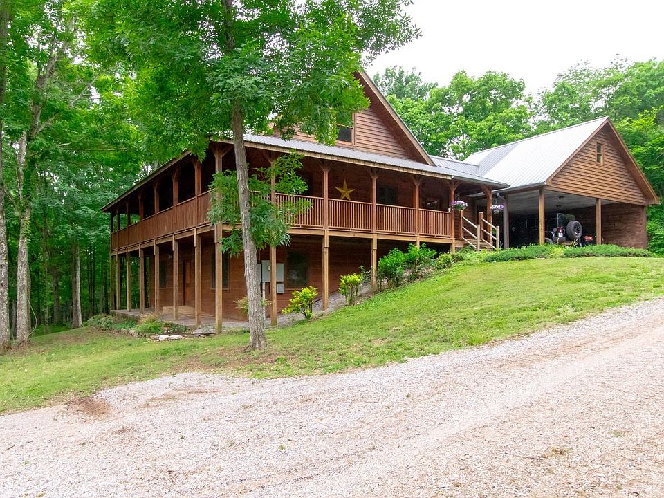 Absolutely gorgeous log home on 10 acres sitting on a hill w/beautiful views of Lascasas! Let's start w/the wrap around porch that extends to all 4 sides of the home. Concrete & brick patio area w/Koi Pond & fabulous landscaping. Two car carport with storage. Heated & cooled two car detached garage/workshop. Living space (apartment) above garage that includes a full bath & more storage. TOO CUTE storage shed w/electricity, front porch, shelving, island, sink & is floored. Home has stenciled concrete, tile, and American Cherry flooring throughout. 10' Metal ceilings in basement. Knotty Pine walls. Custom hickory cabinets. Owner used den as formal dining. Stunning wood beams w/vaulted ceiling in living room, WB stove & lots of windows for natural light. Area in Loft is plumbed. BOMB/STORM shelter w/core filled concrete. This home is built like Fort Knox & made to last! Heavy framing w/ 2x6 tongue & groove. See media section for more property details. Country living at its best! Must see!
