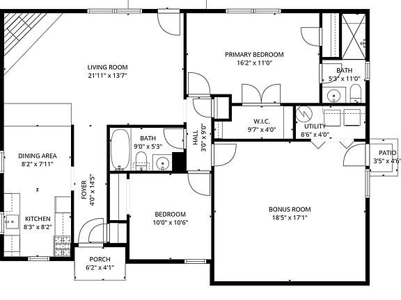 New appliancesLarge backyardBonus roomLarge patioBuffet storageExtra linen storageHall bath