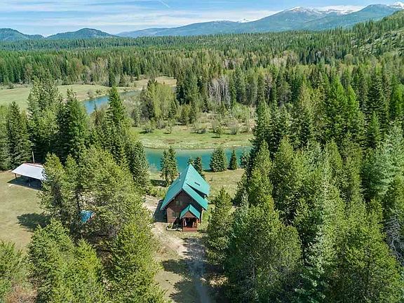 Captivating Riverfront property on 7.57 acres with breathtaking views of Sundance Mountain & the Selkirk range. Approximately 650 feet of River frontage. Rafting and fishing can be yours on this gem of a property. This impeccable 3 bedroom, 2 full bath home has over 2400 square feet. Newly re-stained deck for your outside enjoyment! A well that produces 100 GPM!! Divided basement provides ample storage or game room. Walk out insulated basement. Enjoy watching the moose, deer, elk, bald eagles, and much more! Stargazing is spectacular with views of the Aurora Borealis during the peak season. Across the River are Idaho State lands. All of this with a county maintained road. Floor to ceiling windows to capture the magnificent views of the river and mountain ranges. Enjoy year round living or use as a summer or winter getaway place. Nature awaits your next move!