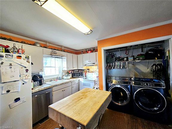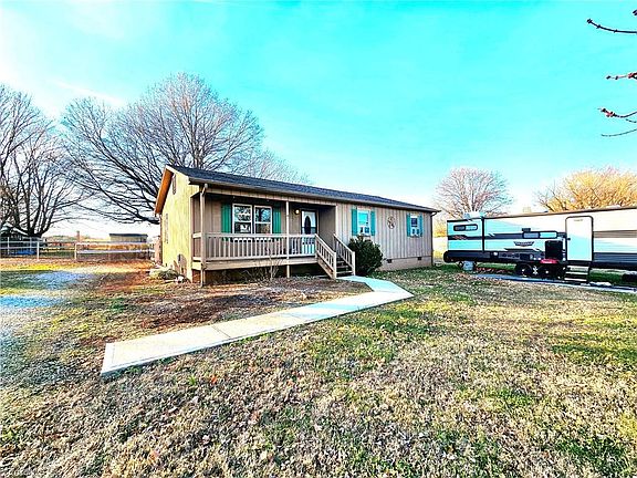 Motivated, bring offers! Price reduction plus offering a $10k concession at closing. Home is peacefully nestled between farmland and fields of horses, located in an established neighborhood with many being original owners. Located in the New Market and Randleman High School District and just down the road from Davis Rodeo Ranch Arena. It has a large level lot, with a huge fully fenced in backyard and privacy on both sides. There is practically a brand new double bay garage at the back of the lot, with a 4" concrete pad and attached lean to, with an additional storage building, and a separately fenced dog run. Homeowners had already began renovations, but there are still cosmetic repairs needed. Roof and windows were replaced by previous owners, the well has a new pressure tank, and the septic system was serviced October 2023. RV's are allowed and home comes equipped with a 50 amp breaker just for that. Being right off Hwy 74 allows for quick easy access to all the surrounding cities.