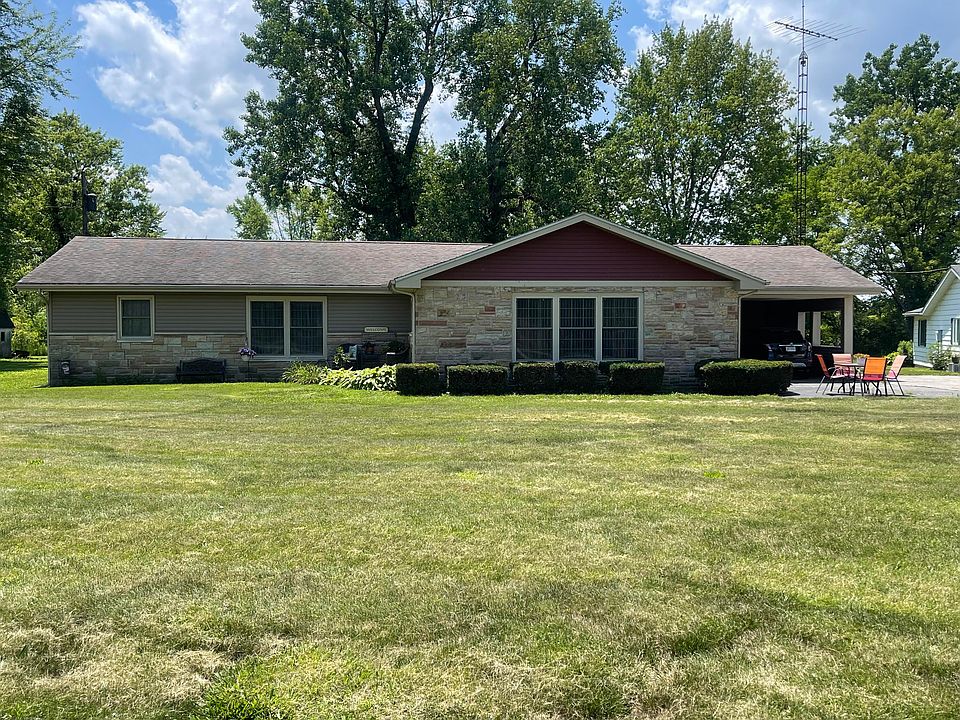 COUNTRY, but only 3 miles from town. This beautiful home sits on 3.34 acres with many mature trees and a nice sized pond. There is a beautiful stone fireplace that goes all the way to the ceiling. The knotty pine in the living room and family room gives this home a cozy, country feel. BONUS! There is a 3 car detached garage with a 2 bedroom and 1 bath apartment attached. It is currently being rented for $425 a month. This apartment could also be used as a vacation rental.