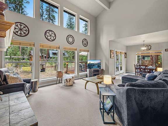 Located in the scenic Wild River neighborhood, this beautiful 3-bed, 2.5-bath home sits just steps from the Deschutes River. The main-level primary suite offers privacy and comfort, while the flexible downstairs space is perfect for a home office, formal dining, playroom, or creative studio. Enjoy the warmth of a wood-burning fireplace under 19-ft vaulted ceilings, with natural light streaming through expansive windows. The kitchen features tile granite countertops, hickory cabinets, stainless appliances, and a large pantry. Upstairs, you'll find two bedrooms, a full bath, a cozy loft, and a spacious bonus room ideal for a 4th bedroom, second office, guest space, or game/media room. A 2-car garage plus a 20x20 attached shop with roll-up and French doors and 220 electrical outlet adds extra functionality. Relax outdoors on the large Trex deck in the peaceful, park-like setting. A truly magical home in an unbeatable location!