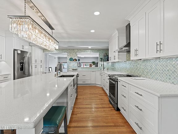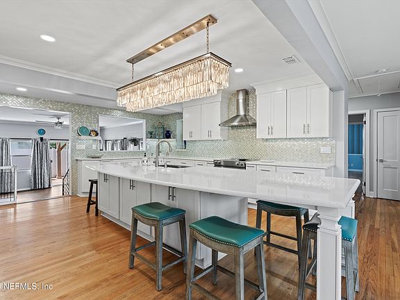 Unassuming from the outside, this beautifully renovated 3-bedroom, 3 full bath home seamlessly blends modern luxury with timeless charm. Every detail has been thoughtfully curated, from the stunning luxurious upgrades and light-filled open spaces to the refinished original wood floors, offering the perfect blend of functionality and style, five blocks off the ocean. Step into the heart of the home - a chef's dream kitchen featuring a massive 13'x5' quartz island, KitchenAid appliances, two sinks, and custom designer cabinetry with generous pullouts & pantry for ample storage. The kitchen flows effortlessly into the open concept living and Florida room, creating a bright and inviting space for entertaining. The owner suite offers a dual-shower spa-like bathroom, double vanities, & large walk-in closet. The hall bath includes a free-standing tub with shower. The oversized 2 ½ car garage includes a full bath. Outside, enjoy a private fenced backyard oasis complete with a gazebo and an outdoor shower. Additional highlights include: New roof & new HVAC, new plumbing & electrical, water softener & house filtration system, Custom laundry room with great storage, generous closet space throughout. This home truly has it all - from the thoughtful design to the top-tier finishes.