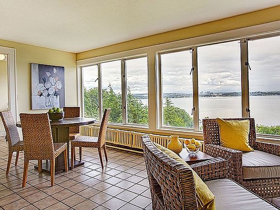 Gracious Craftsman seamlessly combines grand formal rooms with updated casual living areas. Delight in the spectacular views of Mt. Rainier, Lake Washington, Cascade Mountains, Mercer Island and Bellevue skyline. Host dinner for 10 in the elegant dining room and relax after on the open air heated upper deck with gas-line fire pit. Lounge by the gas fireplace in the welcoming living room. Wake to stunning sunrises in the owner suite with private deck and luxuriate in the custom en-suite spa bath. 3 bedrooms, 2 full baths and laundry room up, plus large bedroom/office, family room and bath on main level. Chef’s kitchen opens to deck with soaring views. Wine cellar holds 2,000 bottles. Great unfinished basement with 8ft ceilings. Wonderful outdoor spaces in front and back including huge covered deck with water and mountain views and a sports hardcourt.