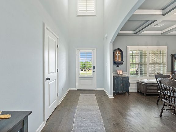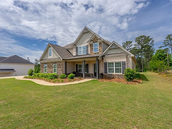 Welcome to 536 Abberly Lane a larger version of the "Redbud plan" called the Oakwood plan in sought-after Abberly Lakes. A beautiful home that blends timeless charm with thoughtful upgrades on 2.28 in serene Harris County. This 4-bedroom, 3.5-bathroom home stands out with added concrete pads, a winding sidewalk, and an expanded patio perfect for outdoor entertaining. Gorgeous sodded back yard and well manicured with trees to invite entertaining and play. Inside, you're greeted by a warm brick hearth in the living area, hardwood floors on the landing, and custom plantation shutters throughout that elevate the home's style and efficiency. The kitchen features stunning quartz countertops, stainless steel appliances, and an open flow into the family room and breakfast area ideal for daily life or hosting. The spacious owner's suite is on the main level and includes an oversized closet and room for a private sitting area or desk. The ensuite bath is complete with double vanities, a soaking tub, tiled shower, and upgraded taller toilets. Upstairs, 3 bedrooms with oversized closets a Jack and Jill bath and an additional bathroom. Other upgrades include a full gutter system, extended closet space, bonus room upstairs great for movies or office space and thoughtful touches throughout. Enjoy the benefits of Harris County living in the convenience of a neighborhood with no HOA, easy access to Fort Benning and Columbus. Don't miss this rare opportunity to own one of the most well-equipped homes in Abberly Lakes!