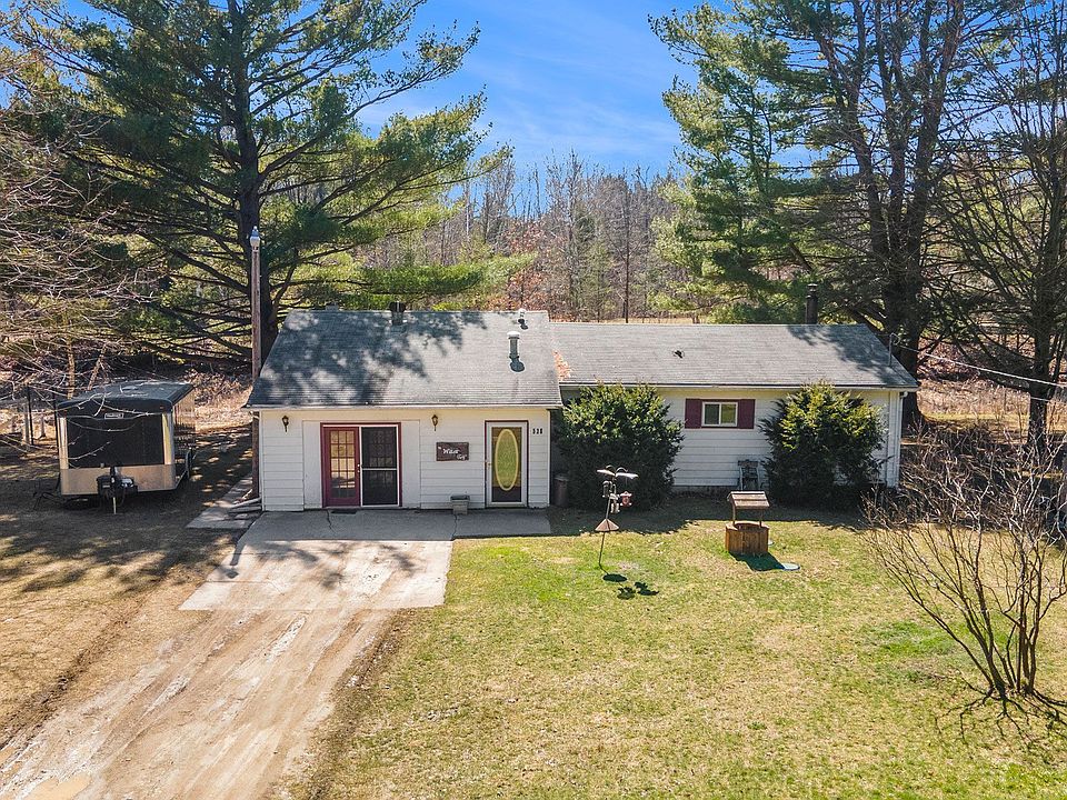 Beautiful Lakefront Retreat: Peaceful (176 feet) on Smallwood Lake - 2 bedroom, 1 bathroom home, in move-in ready condition for a year-round home, investment property, or hunting cabin! Located on a double lot with 2 fireplaces, an updated deck & patio, a beach, 2 docks, hardwood floors, a bright and airy living room, a spacious kitchen and dining area, and a fantastic view of lake canal, woodland wildlife, and perennial gardens. New septic system, 30 x 40 pull barn, hot water heat, central air, and 13 x 22 bonus room. Get in before the water returns so your home value skyrockets! Four Lakes Task Force estimates the return of normal lake levels in 2024, making this an excellent investment.