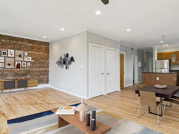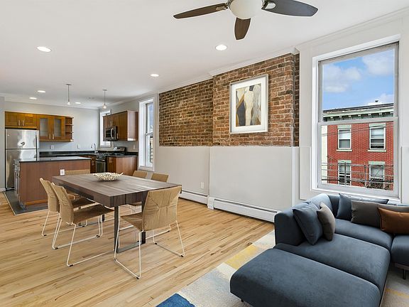 Welcome home to this three bedroom, 2 bathroom condo in the heart of Hoboken. This sun drenched, corner condo offers a spacious open layout with an expansive living room that flows seamlessly into a dining area, with ample space for a separate office area. The open kitchen is complete with an island, stainless steel appliances, granite countertops and ample cabinet space. The primary bedroom offers an en-suite bathroom. The versatile layout presents a unique opportunity to create a fourth bedroom or a larger 3rd bedroom. With hardwood floors, exposed brick accents and in-home laundry this home embodies urban convenience. Additional storage in the basement. Great central location, steps to the bus to NYC, shops, restaurants and parks and the waterfront and an quick walk to both the PATH and ferry. Unit has been virtually staged.