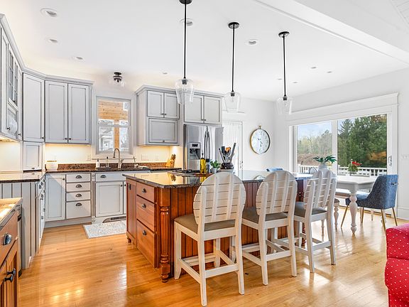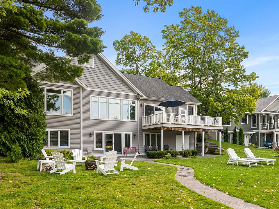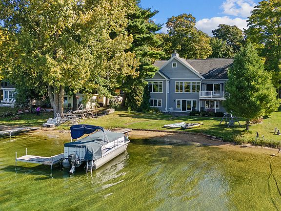 With five bedrooms and two-and-a-half baths, this spacious home is designed for gathering, unwinding, and making the most of every season. Outdoors, enjoy private lake frontage with a sandy-bottom shoreline - ideal for swimming and paddling. A generous dock and on-site boat storage make lake access effortless. Whether soaking in the hot tub, enjoying lakeside evenings around the fire pit, or dining on the balcony just off the kitchen, the setting invites you to slow down and take it all in. Inside, two large living rooms offer ample space for relaxing and entertaining. The open-concept kitchen is bright and functional, while a dedicated kids' bedroom adds a playful, practical touch. Additional highlights include a sauna, light workout area, and a wet bar on the lower level - perfect for hosting guests or winding down after a day on the water. Brakel Point captures the essence of lakeside living, with thoughtful amenities and a location just minutes from downtown Traverse City.