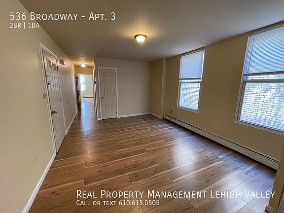 This is a 2 bedroom, 1.0 bathroom, apartment home. This home is located at 536 Broadway APT 3, Bethlehem, PA 18015.