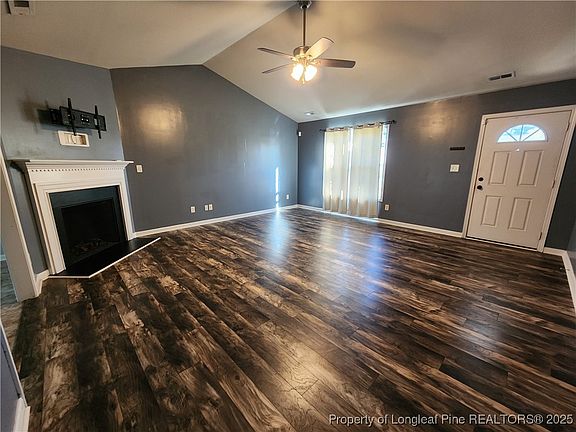 Welcome to River Brooke, a charming residence nestled in the heart of Raeford, NC. This delightful home boasts three generously sized bedrooms and two full bathrooms, offering ample space for comfort and relaxation. The spacious living room, accentuated by an electric fireplace, provides a warm and inviting atmosphere for gatherings. The master suite is a true retreat, featuring a walk-in closet with a window, allowing natural light to illuminate your wardrobe. The master bathroom is a sanctuary of its own, equipped with a luxurious soaking tub for ultimate relaxation. Practicality is not overlooked, with a convenient laundry room to simplify your chores. Step outside to discover your private oasis in the form of a serene backyard, perfect for outdoor activities or simply enjoying the tranquility. River Brooke is not just a house, it's a lifestyle.