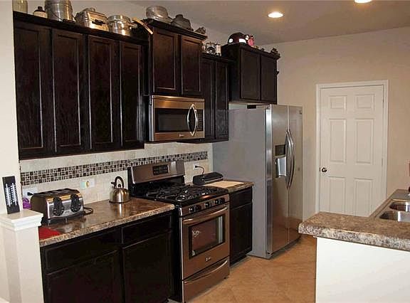Beautiful well maintained Rock home like new. Home offers spacious living/kitchen/dining open floor plan. 4 bedrooms, 2 bath, master suite includes huge walk in closet, garden tub, separate shower. Really nice 2 car garage with nice epoxy flooring. Privacy fenced back yard, Appliances stay with home. NO HOA! Great neighborhood. Covered patio.