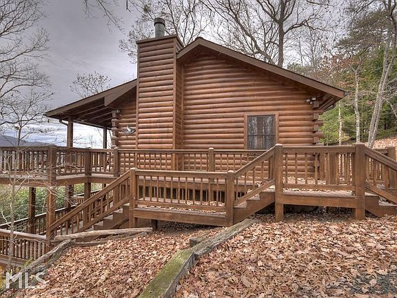 Mountain views like you wouldnt believe... This immaculate well-maintained cabin located in the highly sought after Cherry Lake area is everything you have been dreaming of. Whether you are looking for a full-time or part-time residence, or even for an investment property, you have met your match. This 2 bedroom, 1 bath cabin features an open floor plan, separate dining room area, wood-burning fireplace in the living/great room, true log siding and beautiful hardwood floors throughout. With two levels of decking, come rock on the front porch and take in the incredible mountain scene and crisp mountain air. Heres an added bonus: The home was just stained and a new roof was put on in 2019. With easy access to Hwy 515, you are only minutes from downtown Blue Ridge, hiking/biking trails, Lake Blue Ridge, and more! Nestled on a gentle 0.58 acre lot, this is the perfect place to call home.