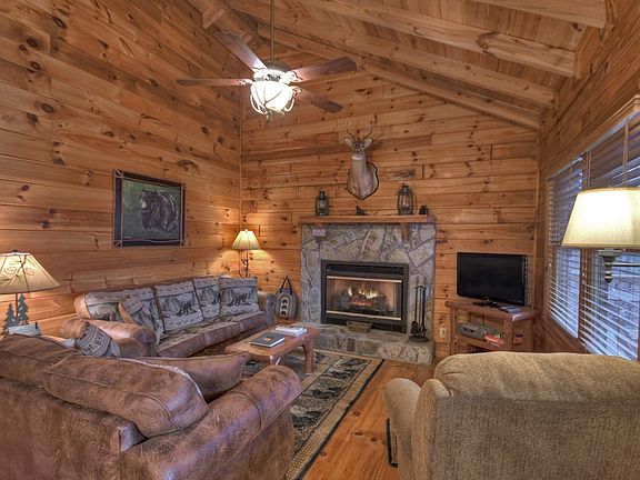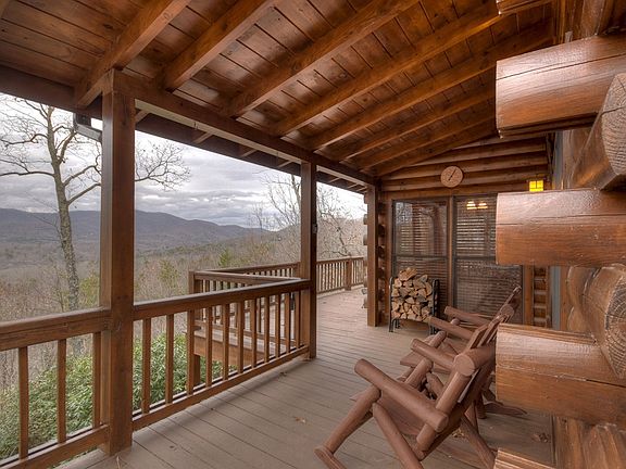 Mountain views like you wouldn't believe... This immaculate well-maintained cabin located in the highly sought after Cherry Lake area is everything you have been dreaming of. Whether you are looking for a full-time or part-time residence, or even for an investment property, you have met your match. This 2 bedroom, 1 bath cabin features an open floor plan, separate dining room area, wood-burning fireplace in the living/great room, true log siding and beautiful hardwood floors throughout. With two levels of decking, come rock on the front porch and take in the incredible mountain scene and crisp mountain air. Here's an added bonus: The home was just stained and a new roof was put on in 2019. With easy access to Hwy 515, you are only minutes from downtown Blue Ridge, hiking/biking trails, Lake Blue Ridge, and more! Nestled on a gentle 0.58 acre lot, this is the perfect place to call home.