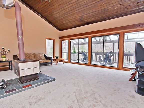Secluded 6.52 acres w stream backs to parkland. Bright and open w walls of windows to enjoy the natural surroundings. Great Room. Covered and open decks. Many recent updates. By Ken Lockwood Gorge and Rt 78 QUICK CLOSE! Vaulted ceiling Great Room w wood burning stove, new carpeting and wall of windows w access to covered front porch Dining room w wood flooring opens to the Great Room. Eat in kitchen w abundant maple cabinetry, decorative tile backsplash, corian counters and sliders to large side deck. Spacious front to back family room w wall of windows, custom built in shelving and desk, storage closet and sliders to yard. Master bedroom retreat w walk in organized closet and full bath. Other bedrooms w 2 closets. Office. Walkout finished basement. Exceptional location near Ken Lockwood Gorge. Excellent schools and commute.