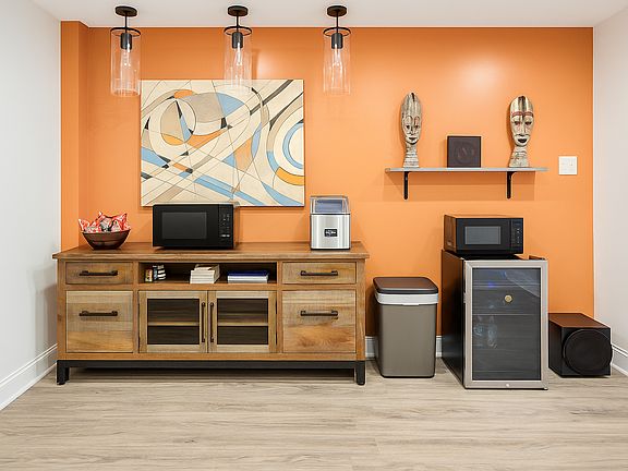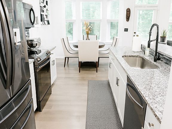 Imagine beginning your mornings in a sunlit kitchen with granite countertops and stainless-steel appliances, enjoying coffee at the breakfast bar or dining nook overlooking the trees. The open-concept living area offers plush seating, modern decor, and a cozy electric fireplace perfect for relaxing after a long day or gathering with loved ones.