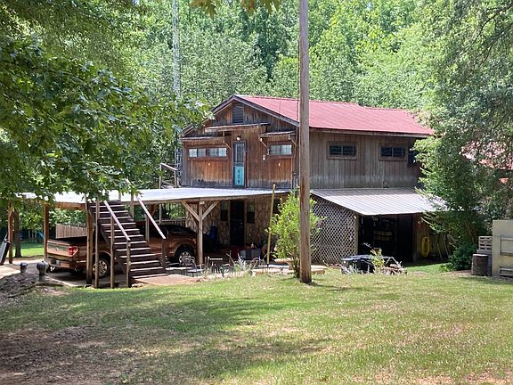 4000+/- sq. ft. wood and stone custom home, four bedrooms, five baths, open kitchen, dining area, and living area, large laundry room, mud room, wrap-around porch, fenced herb garden or dog yard, STORAGE, STORAGE, STORAGE Upstairs could be easily converted into its own living space for additional family. House under a Termite Baiting System Protection Plan * Private and Secluded * Located at the end of a Paved Road * Circle Drive and Roads throughout the Property * Income from a Signage Lease * 25' x 75' 3-sided single shop metal storage building * Storage Builiding * Old Unique Barn * Pond with a Gazebo and Walk-across Bridge * Deer/Dove Plots * Fenced Property Front * Meditation Area * Large fields for Gardening or Hunting * Bearing Fruit Trees and Bushes * Rolling Hills * Rifle/Pistol Range * Storm Shelter * Tool Shed Side of Home * Screened Porch with ceiling fan and grilling area * Service Steps to Upstairs * Hardy Wood Burning Heater * Gas Supplemental Heat * 2 Central Heat and Air Units - Upstairs and Downstairs